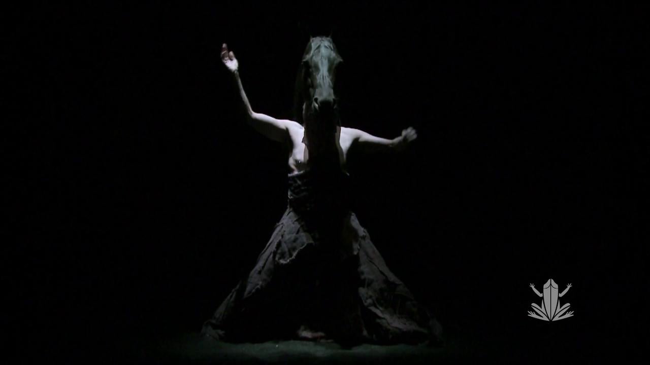 Véritable danse de l’âme joyeusement macabre, exécutée sur piste et dans les airs, Calacas évolue comme un double carnaval endiablé au son du tambour des chinchineros, des fanfares mexicaines et des orgues de Barbarie. Avec encore et toujours le cheval, le plus sûr animal psychopompe qui soit comme passeur, coursier, messager et ange gardien.